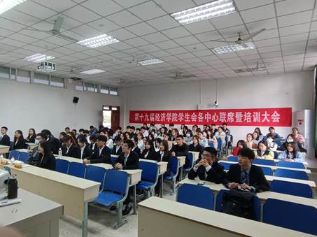 10月17日下午,以“‘经’时之交,‘济’日可待”为主题的第十九届经济学院学生会各中心联席暨培训大会在德经楼117顺利召开。学院学生会主席团、各中心部长以及全体新志愿者们参加了本次大会。会议由综合事务中心熊美玲、戴文轩两位同学主持。