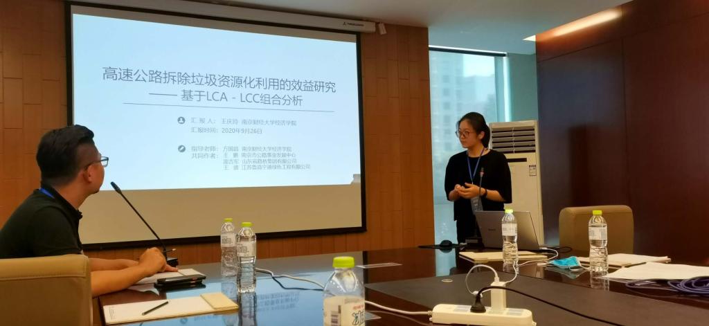 王庆玲同学在分会场汇报了《高速公路拆除垃圾资源化利用的效益研究——基于LCA - LCC组合分析》一文。文章主要研究了高速公路拆除垃圾的资源化管理问题,基于对南京市某基地的调研数据和LCA - LCC组合模型,量化了资源化利用模式和外运填埋模式的环境负荷与经济成本,并重点分析了资源化管理的碳减排效应。汇报现场反响热烈,受到中国石油大学王建良副教授、广东外语外贸大学唐凯副教授等的启发性指导。