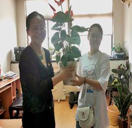 带着这份感恩与祝福,经济学院的学生代表将一盆盆绿植送到老师们的手中,并由衷地对老师们说:“老师,您辛苦了,祝您教师节快乐!”