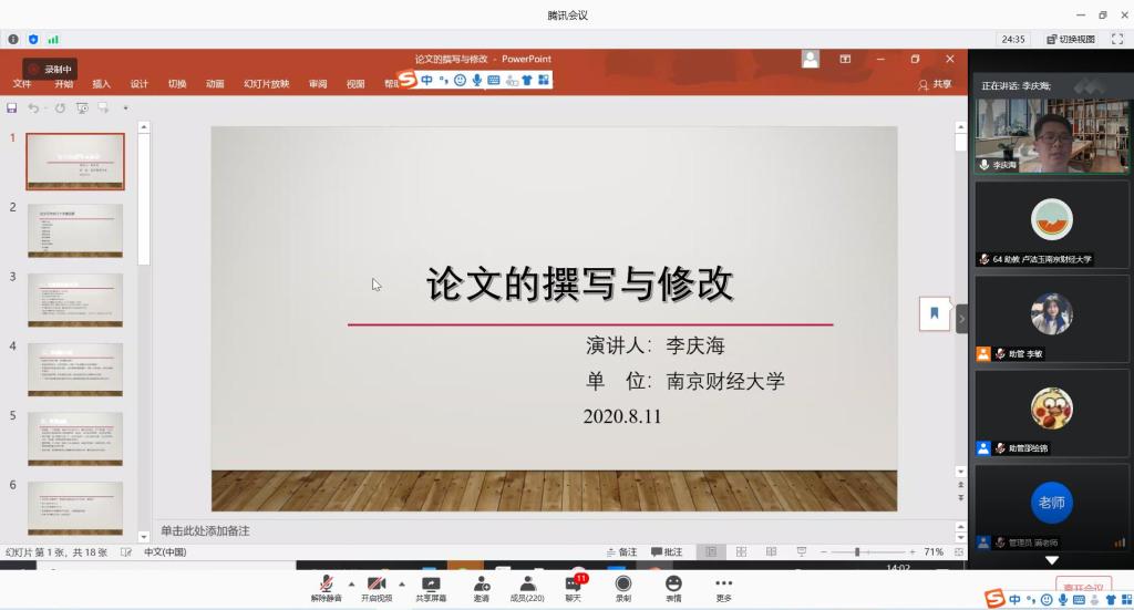 8月11日下午,开云手机web版登录入口李庆海副教授为暑期学校的学员们作了题为“论文的撰写与修改”的专题讲座。