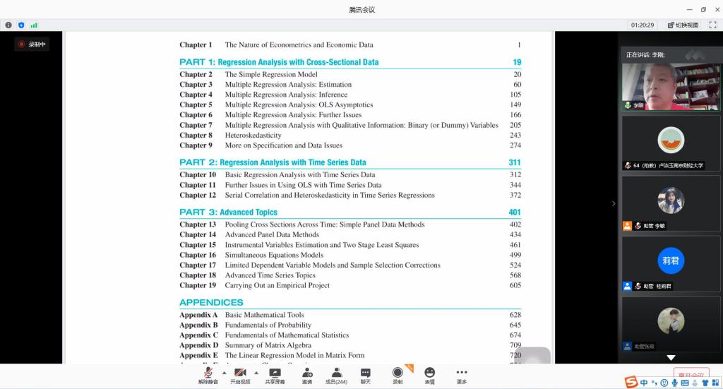 李老师首先简要介绍了计量经济学的思想及计量经济学在当代经济理论中的重要性,通过对伍德里奇这本书的目录的讲解,对微观计量经济学的主要内容进行了梳理。其次用一篇国外论文《The Causation of the Econometrics》,重点分析了计量经济学中的因果关系以及内生性等方面的问题。讲座结束后,学员们对自己在论文写作中所遇到的问题进行了的提问,李刚教授耐心地一一作答。课堂气氛活跃,授课效果良好。
