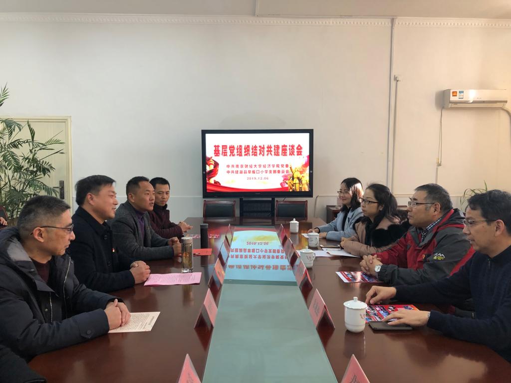 臧振书记代表希望小学对经济学院党委给予希望小学的关心和支持表示感谢,并向大家介绍了南京中华财院草堰口希望小学党支部的基本情况以及2019年度党建工作的开展情况。 陈耀辉书记向对方介绍了南京财大经济学院党委的基本情况、党建工作总体思路与主要成果、“不忘初心、牢记使命”主题教育开展情况等,并提出两点希望共勉。其一,加强理论学习,认真学习领会十九大报告、党的十九届四中全会精神和习近平新时代中国特色社会主义思想,不断提高政治素养,提升教育质量。其二,不忘初心抓教育,牢记使命育新人,将理论学习成果充分转化为实践的力量,指导我们的育人工作迈上新台阶。被教育部授予首批全国党建工作“样板支部”的经济学院统计系教工党支部副书记王平平博士分享了创建先进支部的工作经验。随后与会双方基层党组织的党员们就党员教育、三型支部建设、特色主题党日活动等问题进行了广泛深入的交流。