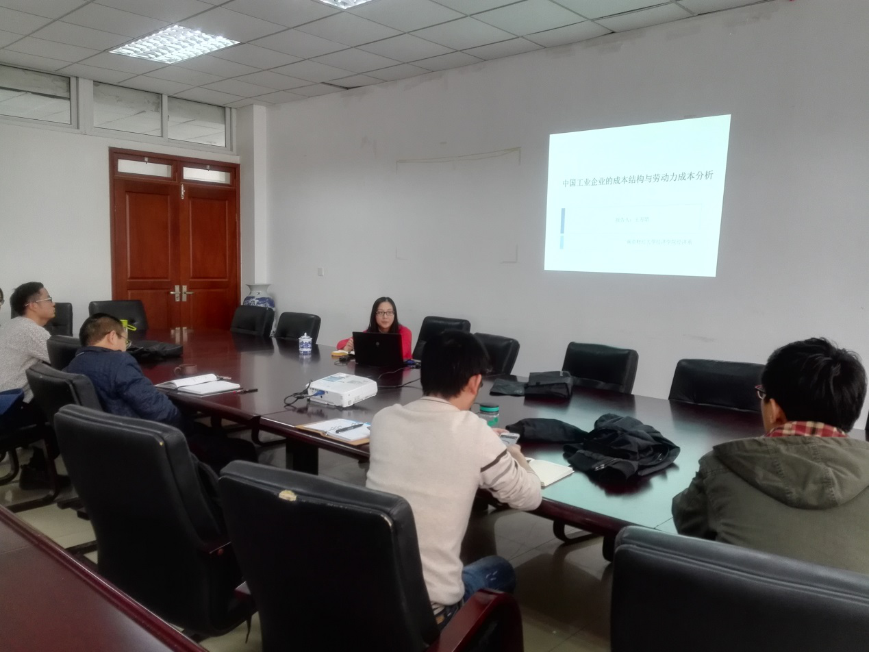 2016年12月5日(周一)下午2点,经济学院在经济学科楼307举办了长三角“收入分配与经济增长”学术论坛第十一次报告。报告题为《中国工业企业的成本结构与劳动力成本分析》,报告人为本院副教授王万珺博士。本院和财税学院部分老师参加了讨论。