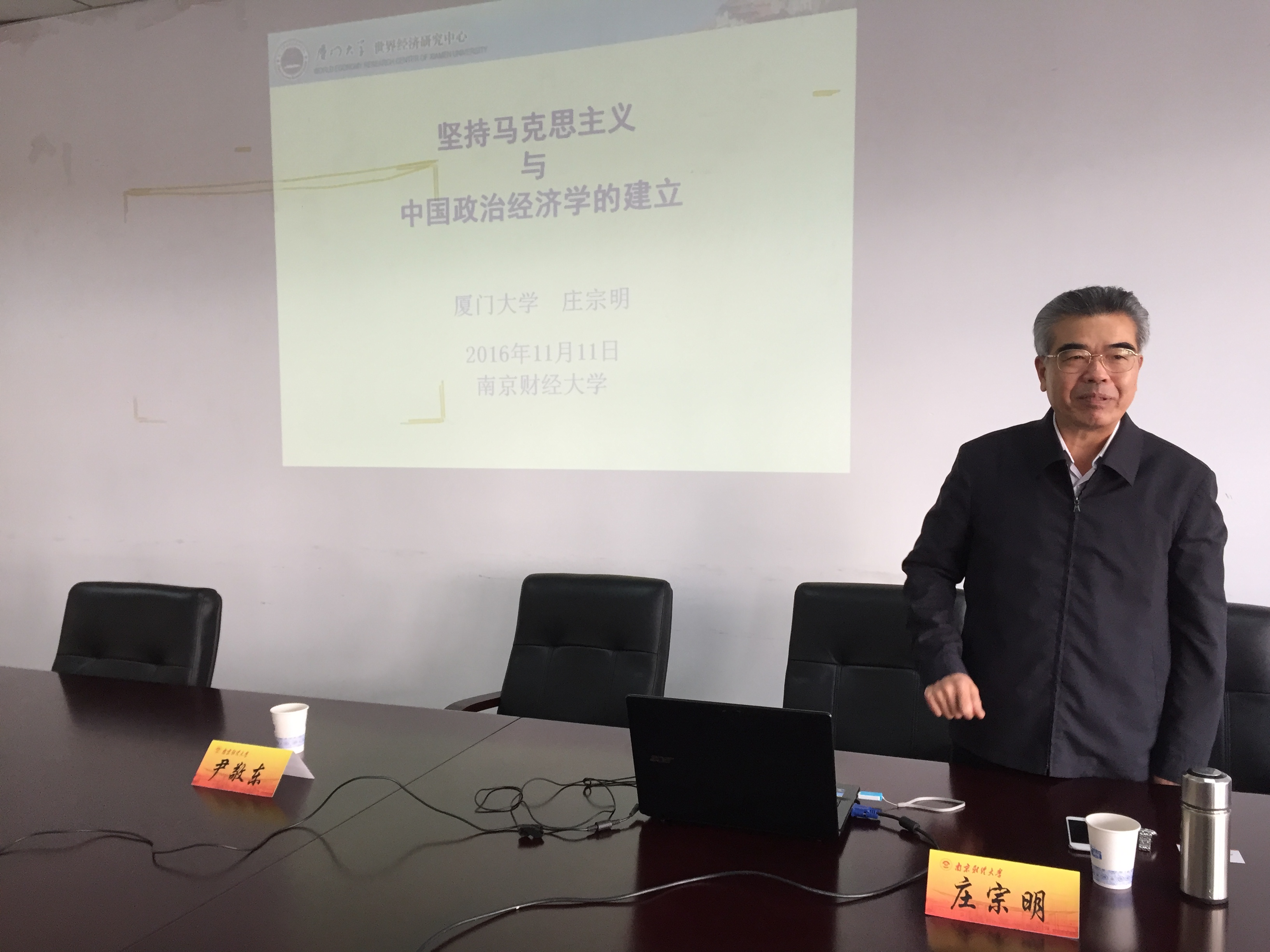 11月11日上午,厦门大学校长助理、博士生导师,著名世界经济问题专家庄宗明教授应邀在我校经济学科楼307会议室作了题为“坚持马克思主义与中国政治经济学的建立”的讲座。讲座由学院副院长尹敬东主持,学院教师、研究生聆听了讲座。