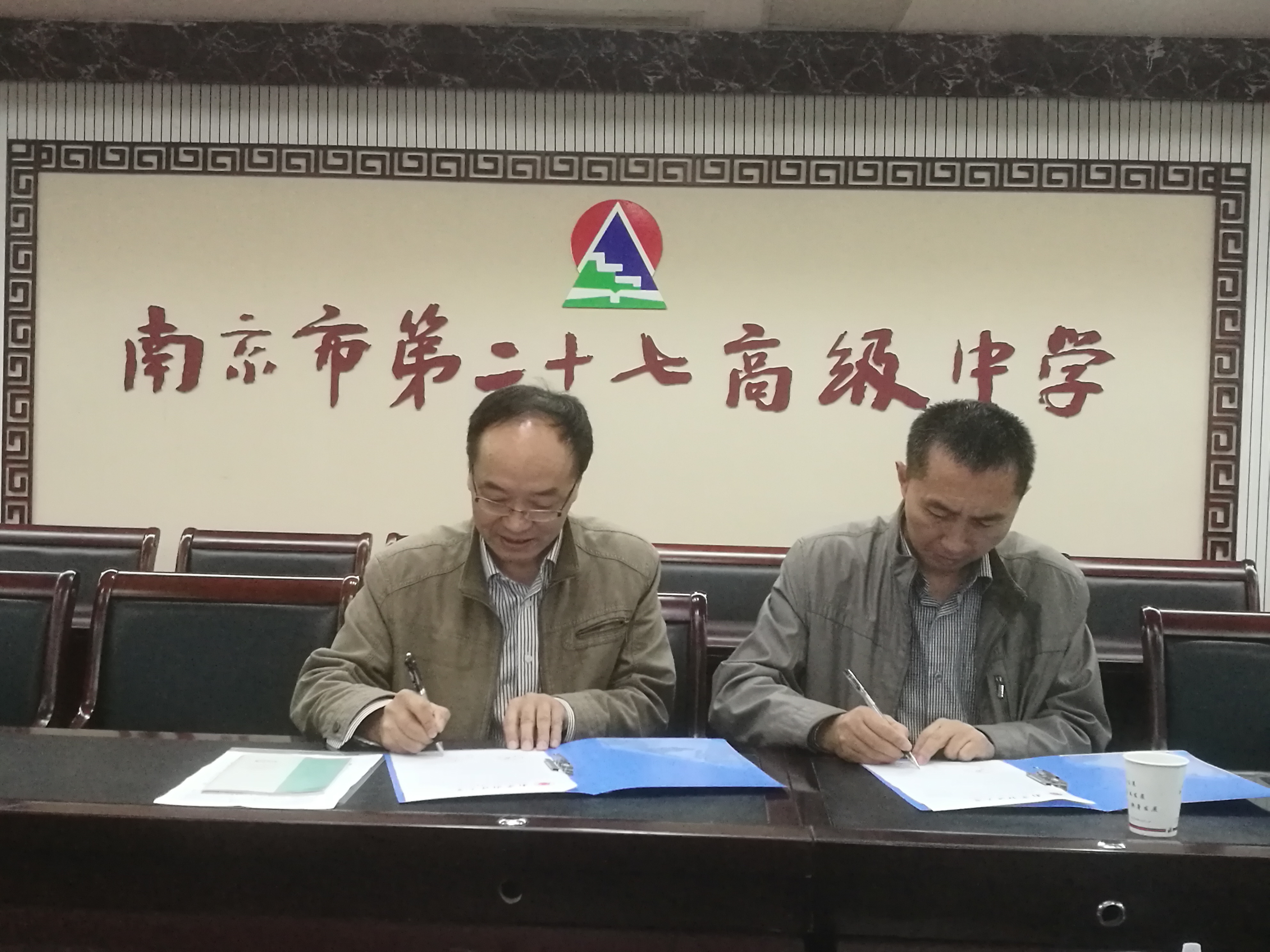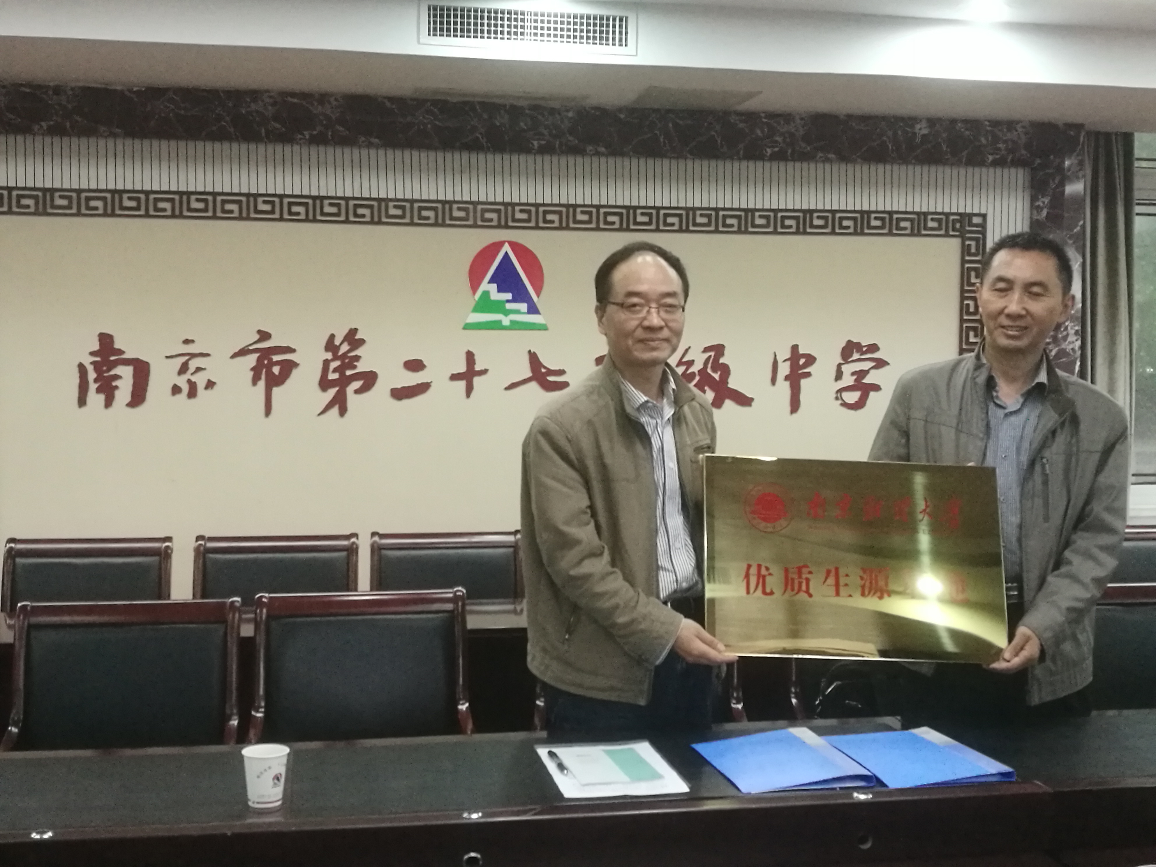 随后,姚学峰处长与鞠党生副校长在“优质生源基地”合作协议书上签字,并向二十七中授“优质生源基地”铜牌。