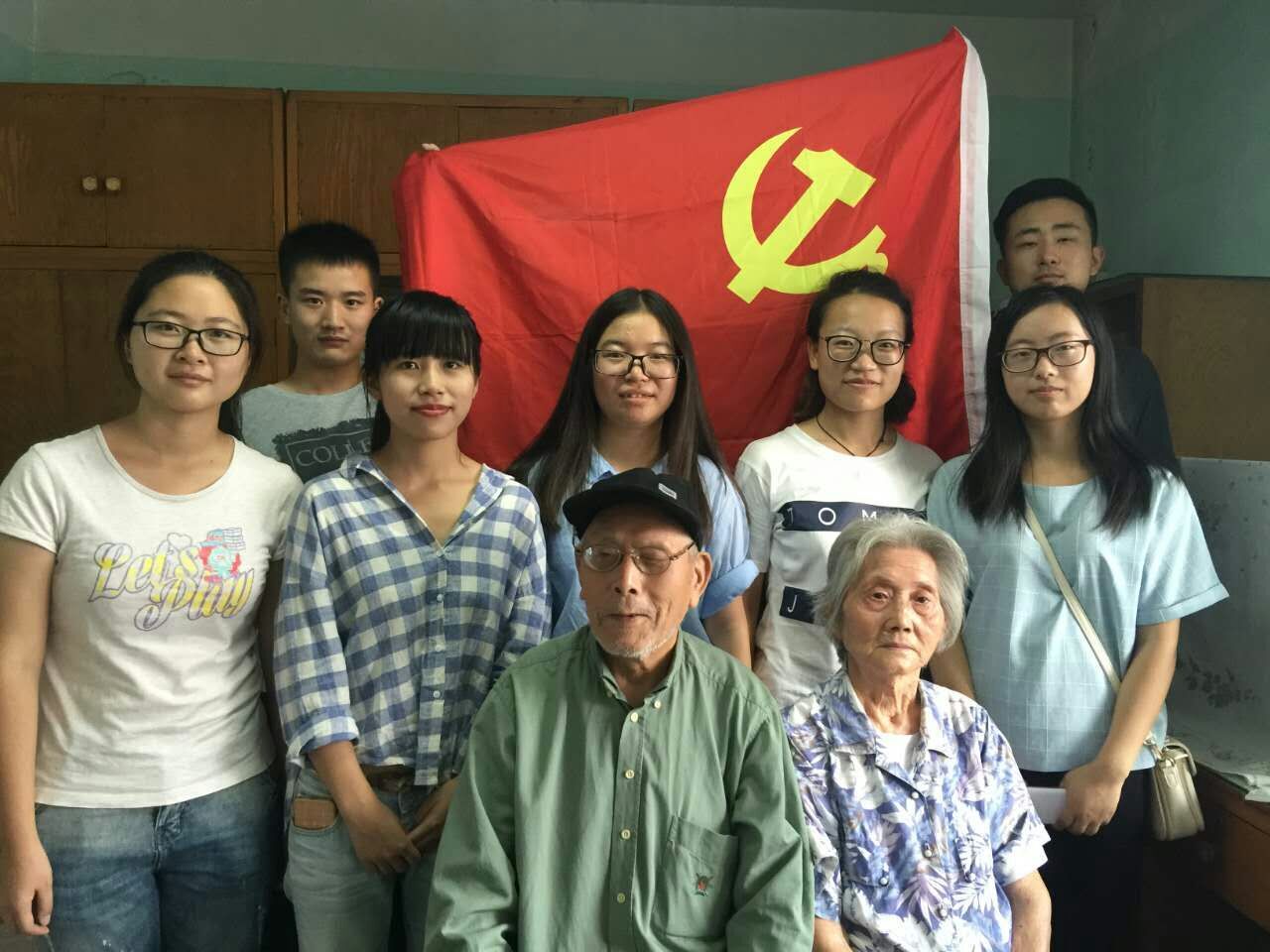之后,学生党员们又前往探访原南京粮食经济学院副书记申玉山。申老14岁起开始打游击,同样也是在盐城参加抗战。谈及抗战,申老感慨万千,他说,我们的战士抛头颅、洒热血,换来了民族独立与人民幸福。我们不应该忘却那段历史,年轻人要继承和发扬老一辈的爱国精神。申老还深情回忆了粮经院期间,从事管理、教学工作的动人场景,并为如今学校取得的办学成就感到由衷的欣慰和自豪。抚今追昔,他嘱咐在校大学生努力学习,开拓创新,为学校的发展贡献出自己的力量。