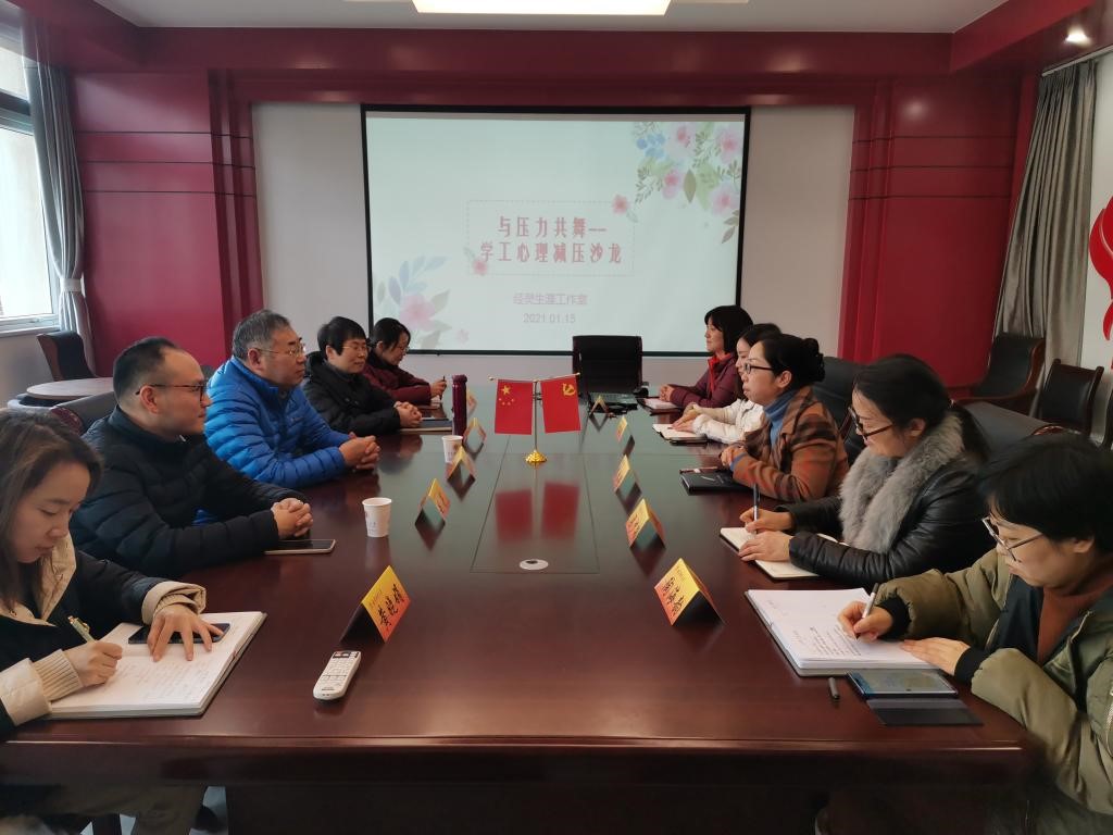 1月15日下午,经济学院与压力共舞--学工心理减压沙龙在仙林校区德经楼329会议室顺利开展。活动邀请校学生处副处长赵亮、心理中心高剑婷担任主讲嘉宾。学院党委书记陈耀辉、副书记袁怡琨及全体学工老师参加了此次活动。