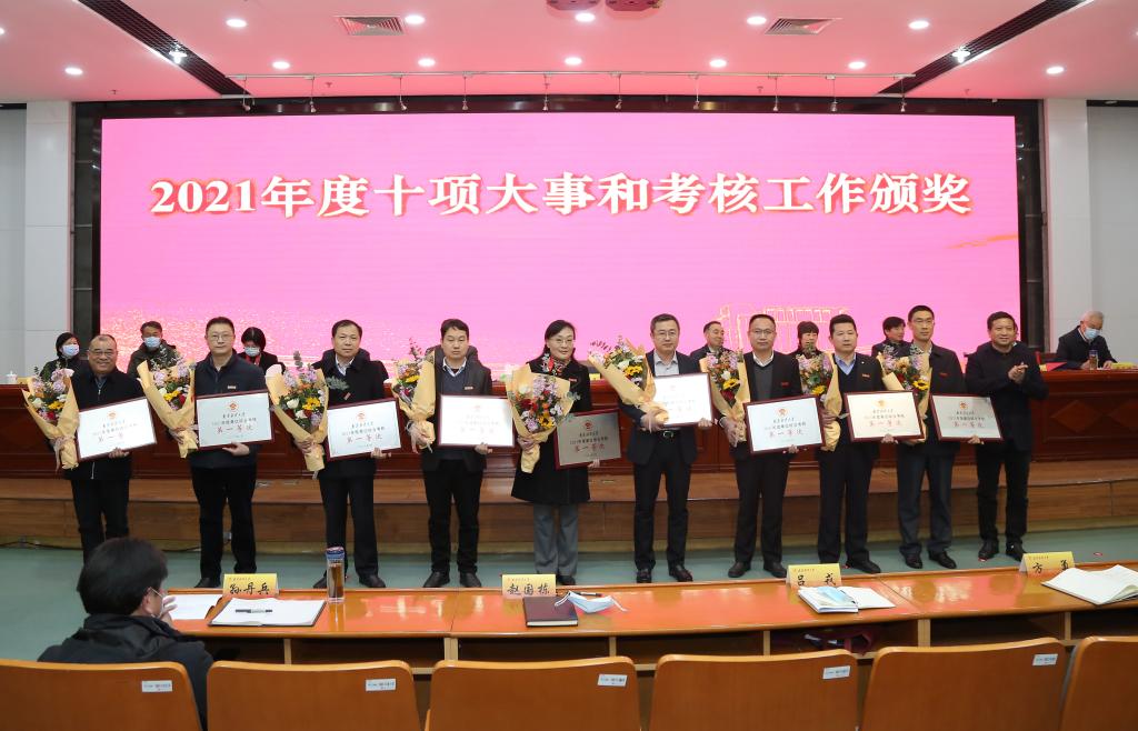 会上,校党委副书记温潘亚通报了学校2021年度单位年度综合考核情况,经济学院、食品科学与工程学院、国际经贸学院三个学院荣获2021年度教学院(部)综合考核第一等次。校党委书记张利民为2021年考核第一等次单位颁奖,我院院长朱红根代表经济学院上台领奖。