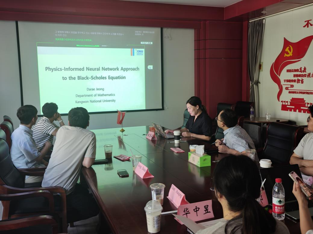 韩国江原国立大学Darae Jeong教授介绍了物理信息神经网络在求解Black-Scholes偏微分方程方面的创新成果。江陵原州国立大学Hyundong Kim教授则阐述了科学机器学习及其实际应用。韩国新韩银行投资主任、高丽大学Changwoo Yu博士围绕量化分析在金融行业中的应用,介绍了金融衍生品定价与数值方法的最新进展。三位学者从方法、应用到产业化的演化逻辑,循序渐进介绍了数理统计方法的新技术如何赋能数字经济发展。